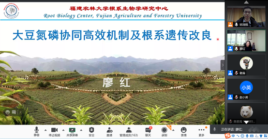 2020年12月11日上午,福建农林大学廖红教授应球王会姚瑞枫教授邀请,在线作《大豆氮磷养分协同高效机制及根系遗传改良》及《茶树适应酸性土壤的机制和应用》的学术报告,并与公司师生进行了热烈的学术讨论。本次报告由姚瑞枫教授主持,球王会及隆平分院相关老师及研究生200余人参加。