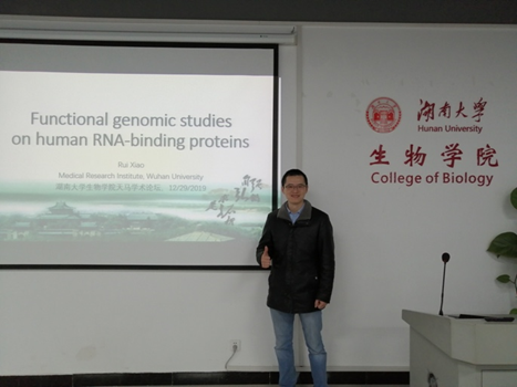 2020年12月29日上午10:30,湖北省“楚天学者”特聘教授、武汉大学医学研究院—肖锐教授,应邀来公司做学术交流,并做了关于Functional Genomic Studies on Human RNA-Binding Proteins的精彩学术报告。该讲座在球王会U型楼B111举办,由球王会张定校教授主持。公司里众多老师和员工参加了该讲座。