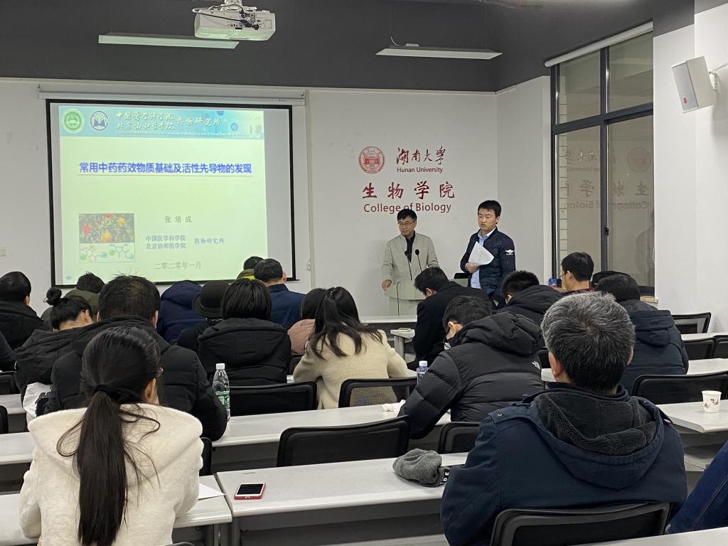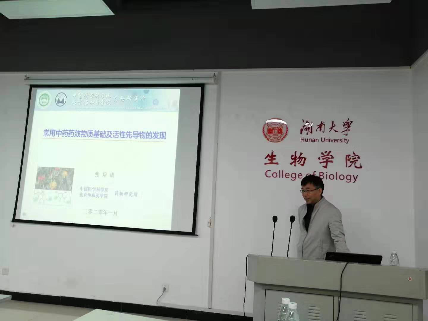 2020年1月6日上午,中国医学科公司、北京协和医公司药物所张培成教授应邀来公司进行学术交流与访问,并作了精彩的学术报告,报告题目为“常用中药药效物质基础及活性先导物发现”。本次报告由球王会郑金海副教授主持。