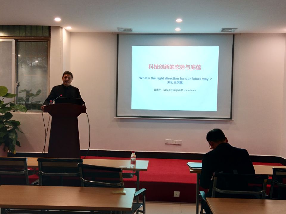 11月14日上午,上海大学吉永华教授应邀来球王会作学术报告。报告会在球王会新办公楼108报告厅举行。