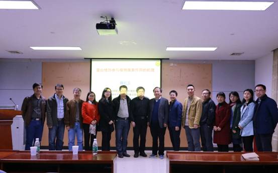 此次学术报告,薛红卫研究员主要围绕酪蛋白激酶(Casein kinase, CK)和蛋白酶体调节因子1 (PROTEASOME REGULATOR1,PTRE1)展开。他以深入浅出的方式向我们讲述了拟南芥CK1在调控乙烯生物合成中的功能及特征。其课题组研究发现,乙烯过度累积能导致CK1.8缺陷突变体黄化幼苗(etiolated seedling)显示特征性的、乙烯特异性组成型反应。进一步研究证实,CK1.8能导致ACS5磷酸化,并导致ACS5的积累,进而促进其稳定性,同时CK1.8也促进了它与E3泛素连接酶ETO1互作。这些研究提供了有关ACS5调控和乙烯生物合成的一些新见解。生长素在植物生长发育过程中发挥重要调节作用。Aux/IAA蛋白作为转录抑制子被泛素化介导的蛋白酶体途径降解,但是对Aux/IAA蛋白快速降解的精细调控机制目前仍不清楚。其团队发现植物蛋白PTRE1在此过程中发挥了重要作用。生长素可能通过改变PTRE1蛋白的亚细胞定位进而抑制蛋白酶体活性并调控Aux/IAA的降解,并与生长素受体TIR1共同精确调控Aux/IAA蛋白的平衡及生长素信号。由于蛋白酶体通过降解蛋白参与了多种激素作用和植物对逆境的响应,该研究不但初步揭示了生长素对蛋白酶体活性的调控,也为进一步解析生长素和植物激素作用机制提供了新线索。随后师生们踊跃提问,薛红卫研究员均一一耐心解答。整个报告会气氛热烈,启发了在座师生的科研思路,激发了大家的科研热情,令师生们受益匪浅。