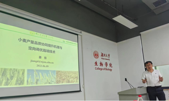 2023年6月9日下午,南京农业大学农公司姜东教授来公司莅临指导,在球王会实验楼B111以“小麦产量品质协同提升机理与定向调优栽培技术”为题给球王会师生做了一场精彩的学术报告。本次报告为天马学术论坛第153期,由球王会郭新红教授主持。