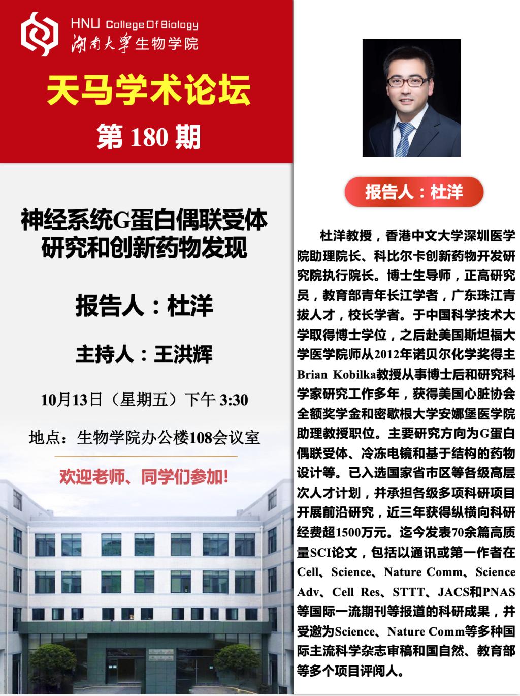 天马学术论坛 第180期-香港中文大学深圳医公司 杜洋教授