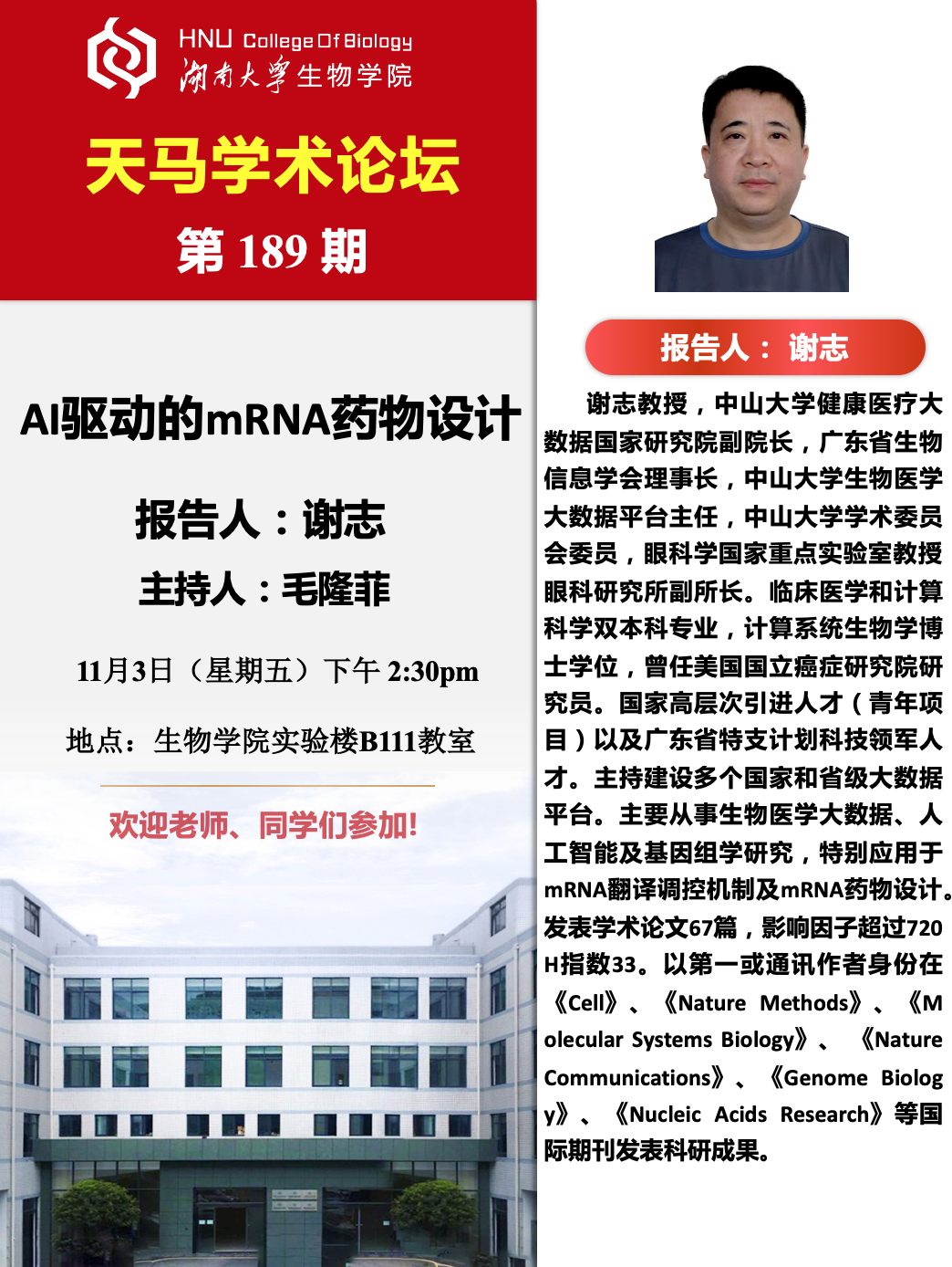 天马学术论坛 第189期-中山大学 谢志教授
