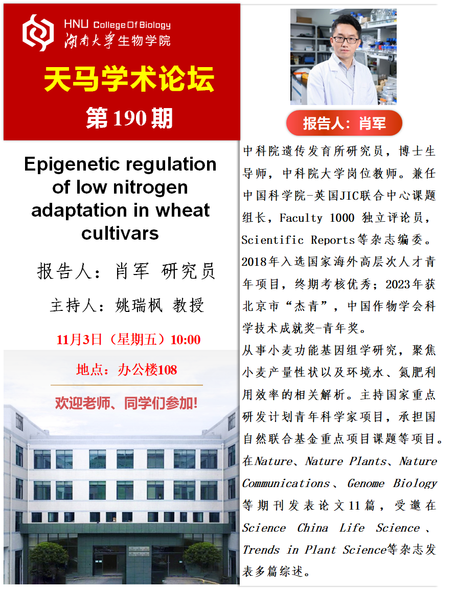 天马学术论坛 第190期-中科院遗传发育所 肖军研究员