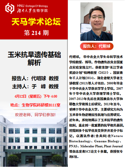 天马学术论坛 第214期 华中农业老员工命科学技术公司教授