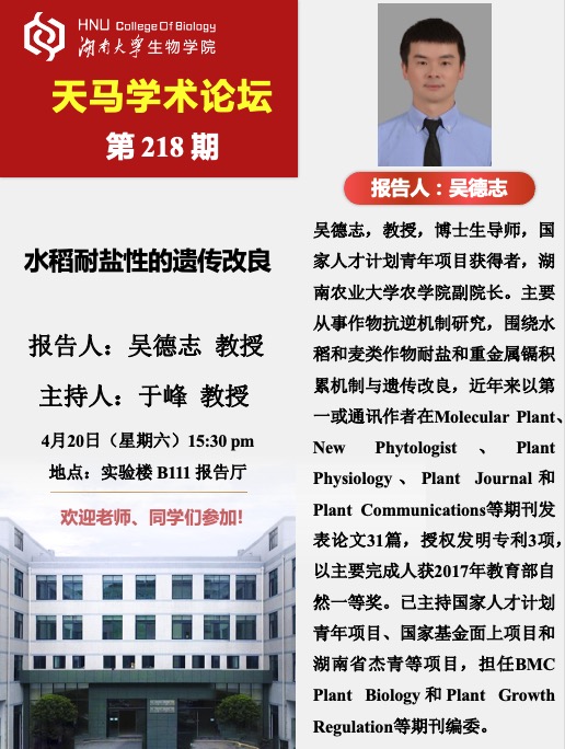 天马学术论坛 第218期 湖南农业大学农公司教授