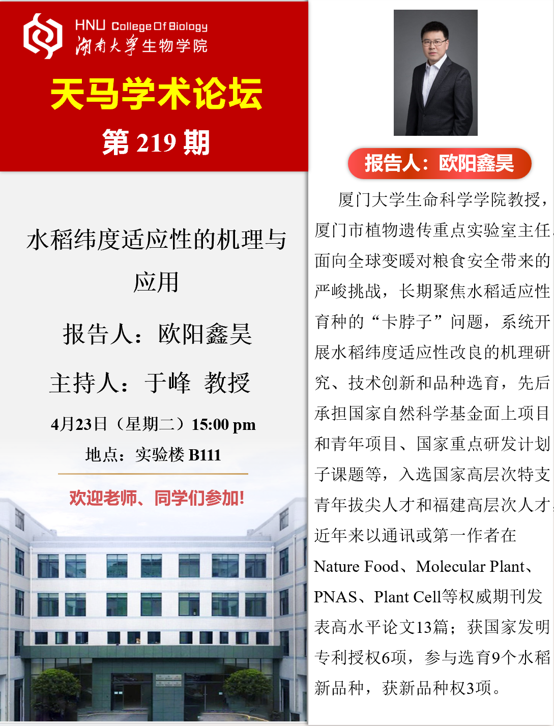 天马学术论坛 第219期 厦门老员工命科学公司教授