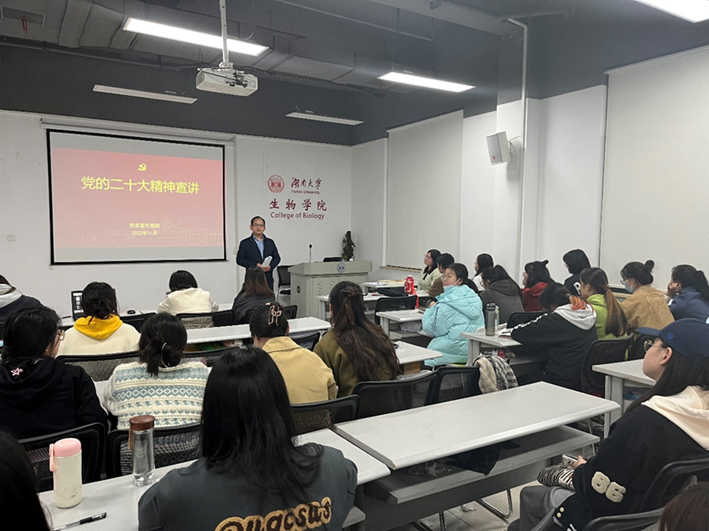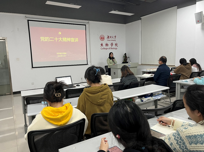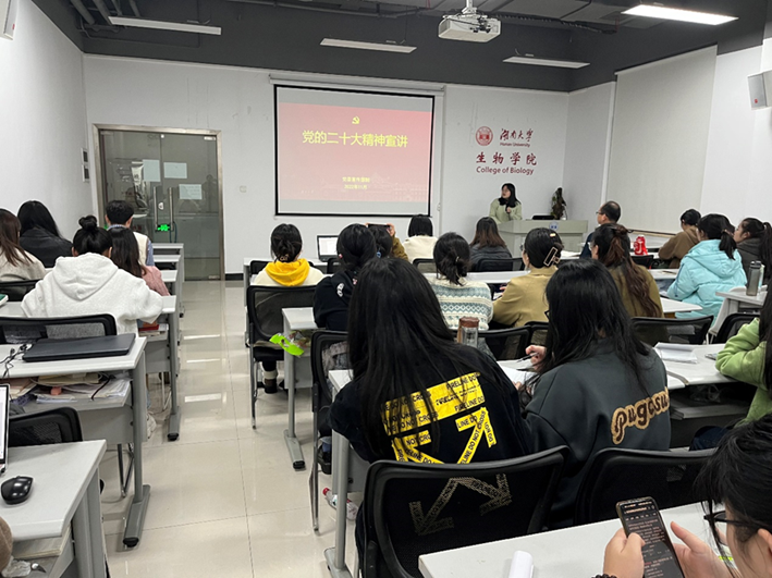 周雪梅同志从党的二十大召开的时代背景、主要成果,二十大报告的主题,二十大报告如何系统总结新时代十年,以中国式现代化全面推进中华民族伟大复兴,全面建设社会主义现代化国家的目标任务和全面部署,坚持党的全面领导和全面从严治党,应对前进道路上的风险和挑战等七个方面,对党的二十大提出的重要思想、重要观点、重大战略、重大举措作了全面系统阐述和讲解。宣讲主题鲜明、内容丰富,既有深入浅出的理论阐释,也有联系实际的生动事例,并通过提问的方式调动大家的参与积极性,这让研究生党员对全面理解和准确把握党的二十大精神具有重要的指导意义。