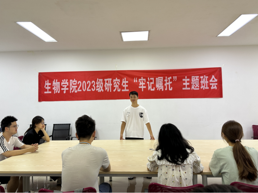 为深入开展学习贯彻习近平新时代中国特色社会主义思想主题教育,持续巩固主题教育成果,培养担当民族复兴大任的时代新人。9月14日上午球王会于办公楼107开展“牢记嘱托”主题班会,球王会2023级研究生新生参与本次活动。