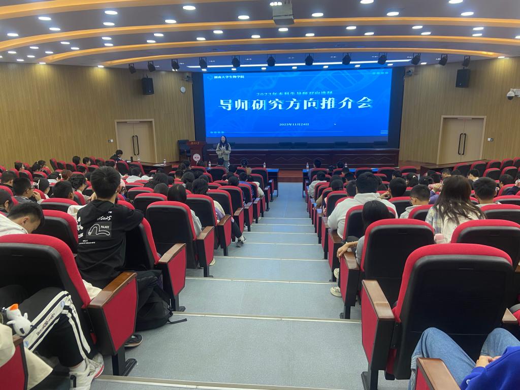 11月24日下午,球王会2023级本科生导师研究方向推介会于综合楼208室召开。生物医学系副主任、兼职辅导员王奕蓉,生命科学系副主任、生物技术2301班班主任伍斗生,生命科学系副主任卓睿,生物医学系教授李薇,生命科学系副教授朱思睿,药学系助理教授周露玙、李亚超及2023级本科生参加本次会议。大会由辅导员于淼漪主持。