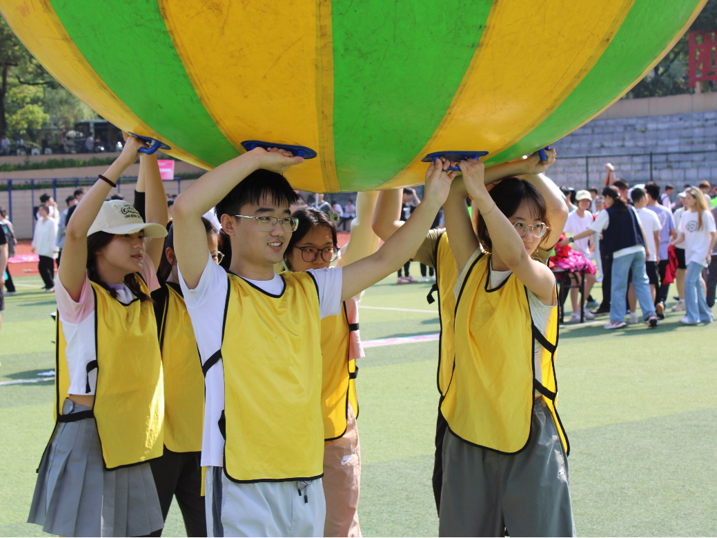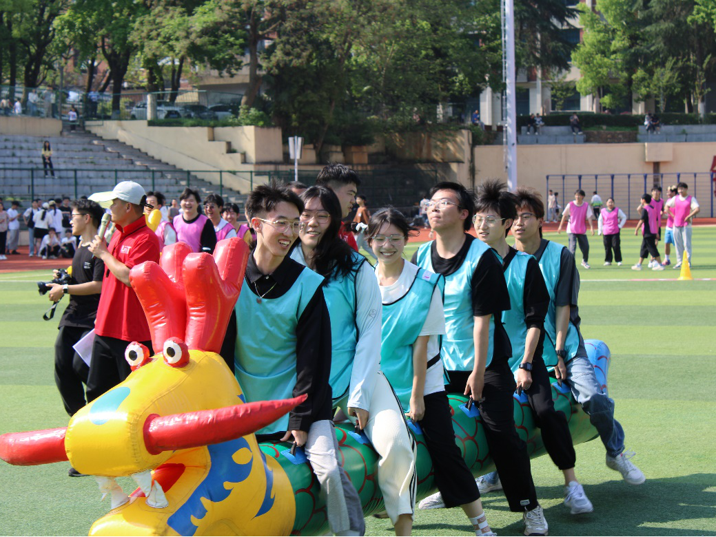 要在人数基础雄厚大院中脱颖而出并不容易,需要项目领队在项目开始前积极组织,努力寻找项目取胜的技巧,就如在“勇往直前“项目中,师生们根据队员的身高分成两队,提前协商口号,努力提升速度的同时保持步调一致,并成功拿下该项目第四轮的第一。同样的方法使我们在”携手并进“项目中崭露头角;”众志成城“项目要求队员们借助道具,如履带般滚滚向前,极度考验队员们的默契配合度;