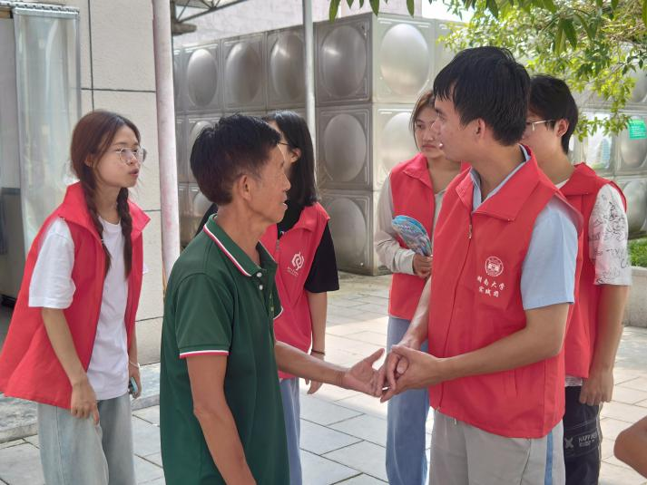 乡村振兴不掉队,关怀老人传温情。实践团成员“以关怀为基,用行动落实”。团队成员自发购买牛奶,衣服,前往桂英村中心敬老院慰问,了解老人的日常生活状态、身体健康等情况,细心询问生活中遇到的困难,关心他们的健康和生活需求。“不负东篱约,携尊过草堂”,队员们帮助老人整理打扫卫生,陪伴倾听老人讲述生活故事。让清冷院落增欢声、添笑语、展笑颜。架起连心桥,传递了“为你而生”实践团成员对老人们的关怀与关心。