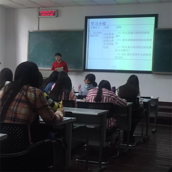 2016年4月11日上午10点在教学中楼204教室,在何晓晓副经理的带领下,十位新引进的教师和本学期参加教学比赛的教师汇聚一堂聆听了校教学比赛一等奖获得者李新梅老师讲授了《生物化学A》这门课程。李新梅老师的教学设计内涵丰富,教学方法灵活多样,重点突出,讲述内容深入浅出,适当列举实例,与员工互动良好。在李新梅老师的讲述下,枯燥无味的理论知识也变得简单易懂了。观摩课后,何经理,李老师与青年教师进行了交流,青年教师纷纷表示这是一次学习和借鉴优秀教师课堂教学方法的良机,激发了他们投身教学一线的热情,为他们今后如何上好课拓宽了思路。
