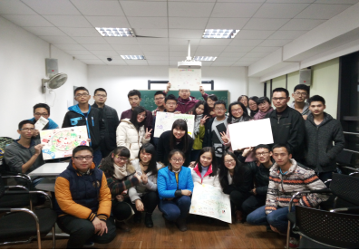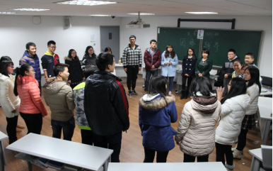 在各班级的团体辅导中,每个班都进行了“心有千千结”这个环节,这个环节要求大家站成一个圈,记住身边的人,再按主持人的指示交换位置,换好后牵起最开始身边人的手,并在规定的时间内解开解。在此环节中,大家欢声笑语,脑洞大开,用各种新奇的办法解开此解,有的同学采用从上面跨过手的方式,有的同学采用跳芭蕾的方式旋转、跳跃,然而并非所有的解都能被解开,未解成功的团队则接受了惩罚,在生物技术1502班团体辅导的现场,受罚的女生集体为男生表演了一首《小幸运》,温柔的歌声伴随着暖暖的伴奏和甜美的歌词,给团体辅导增添了不少温暖。