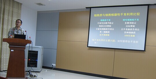 2014年10月15日下午,涂金星博士为公司师生进行了题为“油菜隐性核不育分子机理及其在杂种优势中的利用”的学术报告。涂金星博士为华中农业大学植物科技公司和作物遗传改良国家重点实验室教授、博士生导师,主要从事油菜杂种优势利用,植物雄性不育分子机理和植物分子育种研究。主持了973子课题项目,国际合作项目,863项目及国家自然基金项目。在Molecular Breeding,Plant Journal等著名的作物育种及植物学杂志上发表研究论文多篇。