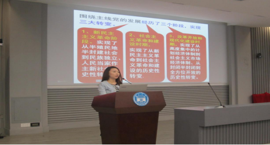 第二位授课老师是球王会团委书记谢凤汁,她讲授的主题是中国共产党的光辉历程。她的讲述围绕“一条主线“、”两篇文章“和”三大成就“展开,进一步增进了同学们对党的认识并促进同学们明确自己的入党动机,同时又让同学们认识到中国共产党的巨大吸引力和生命力的来源。