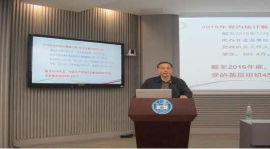 紧接着是培训班授课。给培训班授课的第一位老师是球王会体育官网党校常务副董事长刘喜东,他讲授的主题是共产党党员的标准和发展程序。他用丰富的数据和图表使同学们对党员人数和党员组成等基本情况有了直观的了解,通过引用斯诺、陈毅的名句和十九大报告中习近平总书记的发言,让同学们对中国共产党人的初心和使命有了初步的认识。在初步了解党的基本情况后,再从全面准确认识党员标准,党员的义务与权利及党员发展程序三个方面向全体入党积极分子进行授课。最后,寄语同学们以青春之我创建青春之国家,过有意义的人生。
