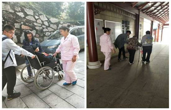 10点半,所有活动顺利结束。志愿者们将老人送回房间后,老人们对志愿者们依依不舍,直到护士阿姨将饭送来,才和志愿者们一一道别。