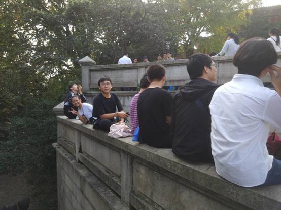 下午2时30分,全体同学陆陆续续地从生物院楼出发,熙熙攘攘的人群,见证了岳麓山的热闹,也充溢着同学们的欢声笑语。他们迈着稳健的步伐,一路上交谈着学习和生活上的趣事,热情甚高。登山途中,遇到美丽的景点,同学们也停下脚步,驻足欣赏,并用相机留下了最美的时刻。