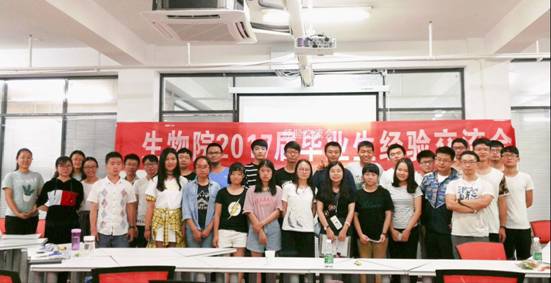 6月16日下午,在生物院辅导员许路老师的指导下,2015级本科生邀请了一批优秀的2017届毕业生在图书馆的研讨空间开展了关于保研考研以及出国就业的经验交流分享会。
