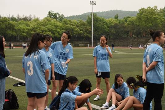 2017年4月9日上午11点30分,湖南老员工物院女足迎来了自校联赛开启后的首场比拼。此次比赛是和设计院球员们的较量,最终,生物院以1:0的比分取得了胜利。