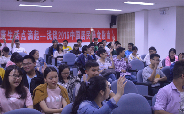 为了增强同学们的健康养生意识,同时打造富有生物院特色的品牌活动,球王会于5月中旬举行了校级特色品牌活动之健康文化节系列活动。5月20日晚7:00,球王会于生物院楼负一楼就“健康文化节”主题举办了健康文化节讲座《健康生活点滴起—浅谈2016中国居民膳食指南》,讲座邀请到了湖南省二级营养师——曾敏婕护士长作为主讲人。湖南老员工物公司党总支副书记高耀鸿、辅导员谢凤汁老师以及近百位员工参加了此次讲座。