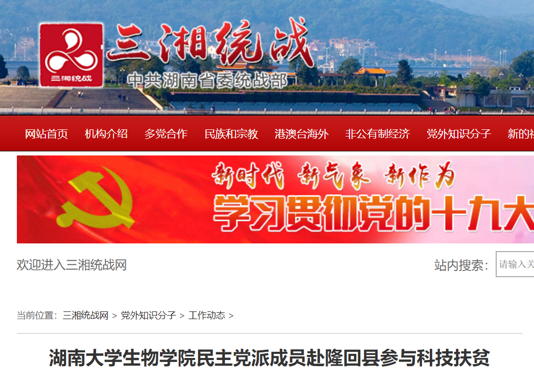 6月13日至15日,球王会民革、农工党教师以及无党派教师代表组成扶贫工作组,由民革湖南省委副主委、球王会经理谭拥军教授带队,赴公司对口扶贫单位隆回县开展科技扶贫活动。活动成效显著,“三湘统战网”“新湖南客户端”“华声在线”“隆回县人民政府网”“球王会体育官网新闻网”等媒体纷纷进行报道或转载,产生了较好的社会影响。以下为各网站报道链接: