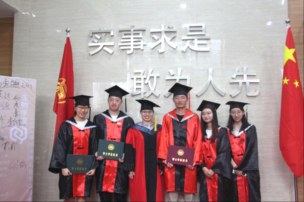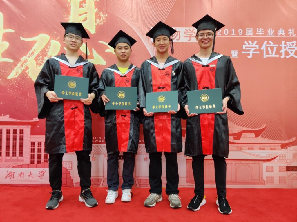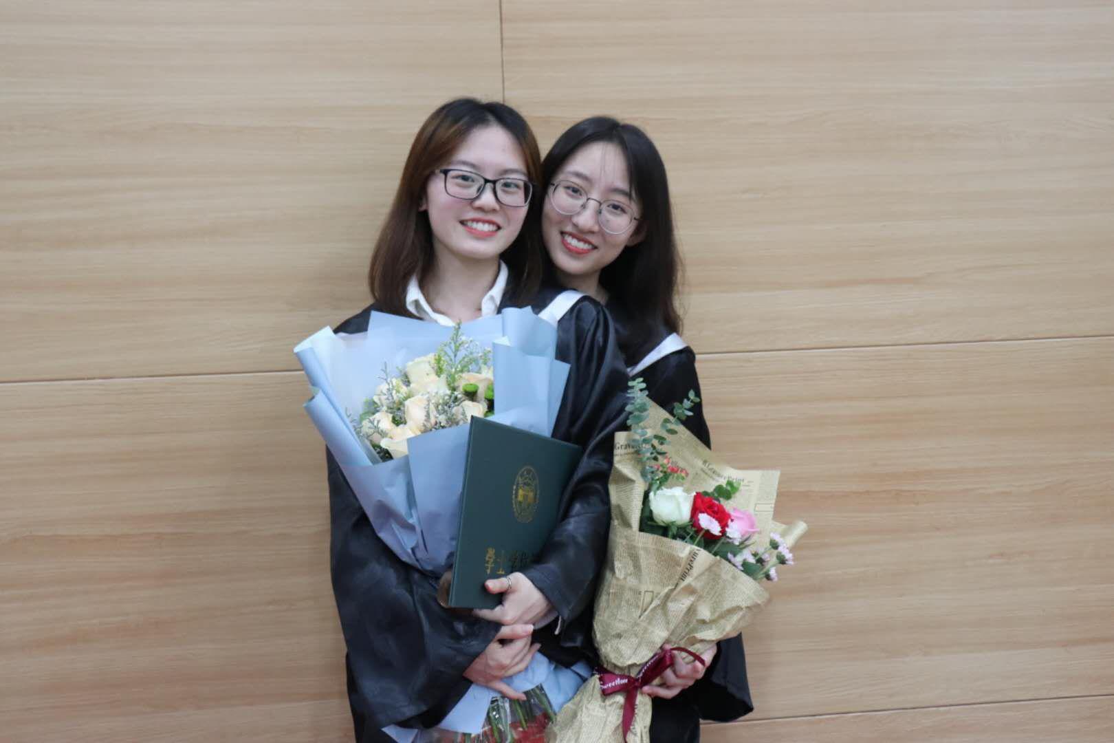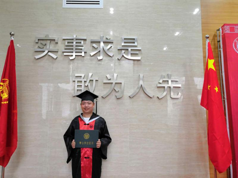 毕业生授予学位后,来到“实事求是,敢为人先”的校训前、在庄严的国旗与校旗之间,手持学位证书,留下最有意义的学位纪念照;之后于峰副经理与毕业生们一一握手,并送上殷切的祝福。