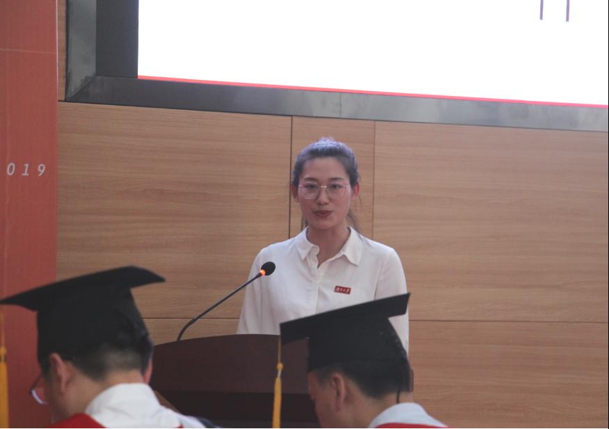 优秀毕业生罗鼎仪同学代表全体毕业生上台发言。他说到:“感谢球王会的培养,让我们每一位毕业生能够在大学期间丰富自我,马力满满地向人生的下一站进发!”2019届全体毕业生,将牢记“实事求是,敢为人先”的精神,带着公司给予的一身本领,去直面挑战,扛起家庭的未来和民族的希望。无论站在哪一个岗位,都将坚守住自己的阵地,为社会的发展、国家的强盛添砖加瓦。无论我们未来将奔向何方,始终会铭记:有一个家在湘江之滨,在麓山脚下。
