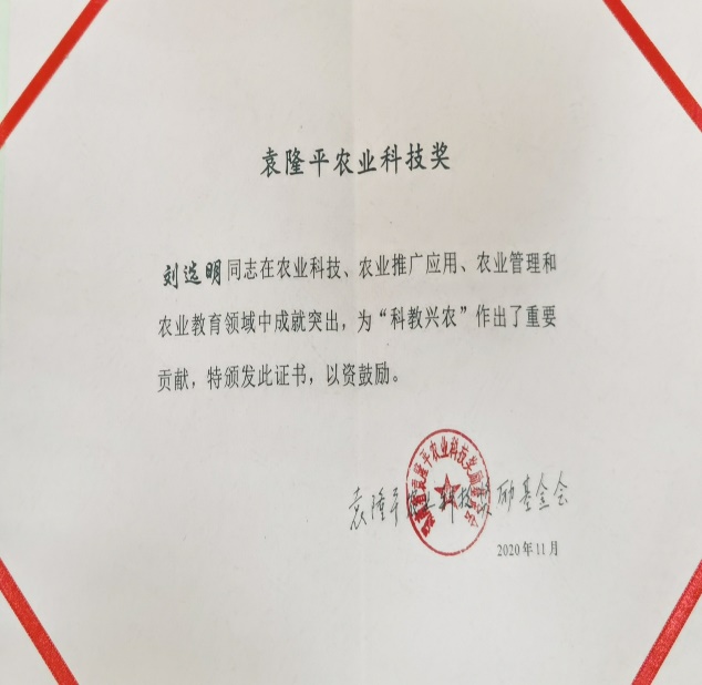 11月13日上午,第十一届袁隆平农业科技奖励大会在杂交水稻国家工程研究中心(长沙)隆重举行,球王会刘选明教授喜获第十一届袁隆平农业科技奖励(创新奖),90岁的袁隆平院士亲自为获奖者颁奖。袁隆平农业科技奖励基金设置主要是在全国奖励在农业科研、农业产业化、农业推广应用、农业管理和农业教育方面做出了突出贡献的先进个人或团体,是全国重要的科技奖励之一,过去已经颁发了十届。