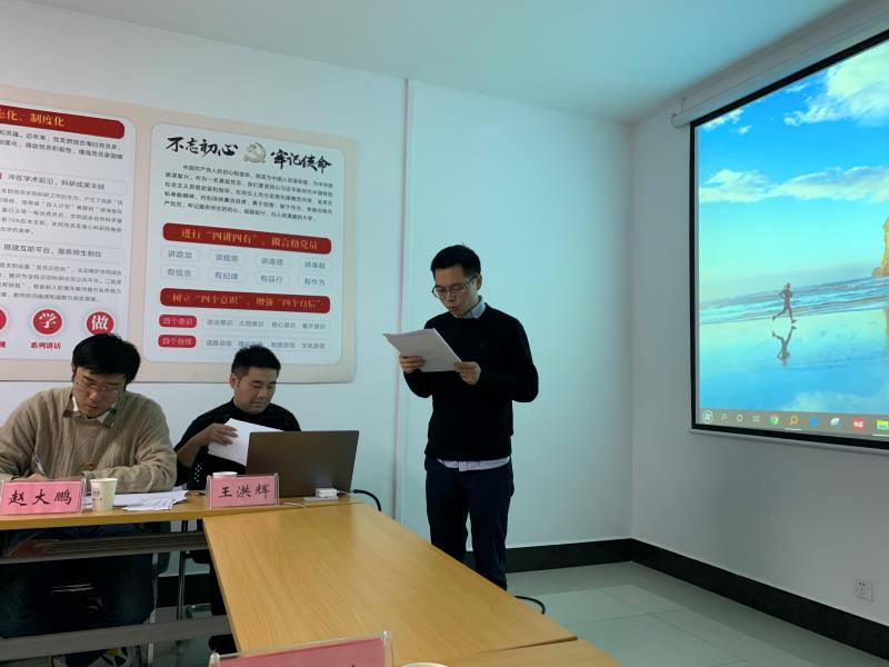 会上,全国“双带头人”党支部书记聂和民结合“不忘实心、牢记使命”主题教育活动,介绍了本季度支部工作进展情况及未来工作计划;讨论了海归青年教师贺建军的入党申请,与会党员全票通过接收其为中共预备党员;何晓晓以“对课程思政的‘明’与‘行’”为题讲党课;邱烨向大会介绍了支部扶贫工作的进展情况。
