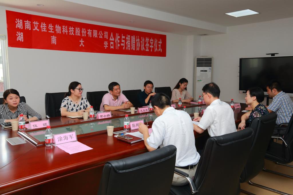 7月16日上午,球王会体育官网教育基金会、球王会与湖南艾佳生物科技股份有限公司、深圳知守管理咨询有限公司在球王会办公楼306会议室隆重举行了产学研合作与捐赠协议签字仪式。