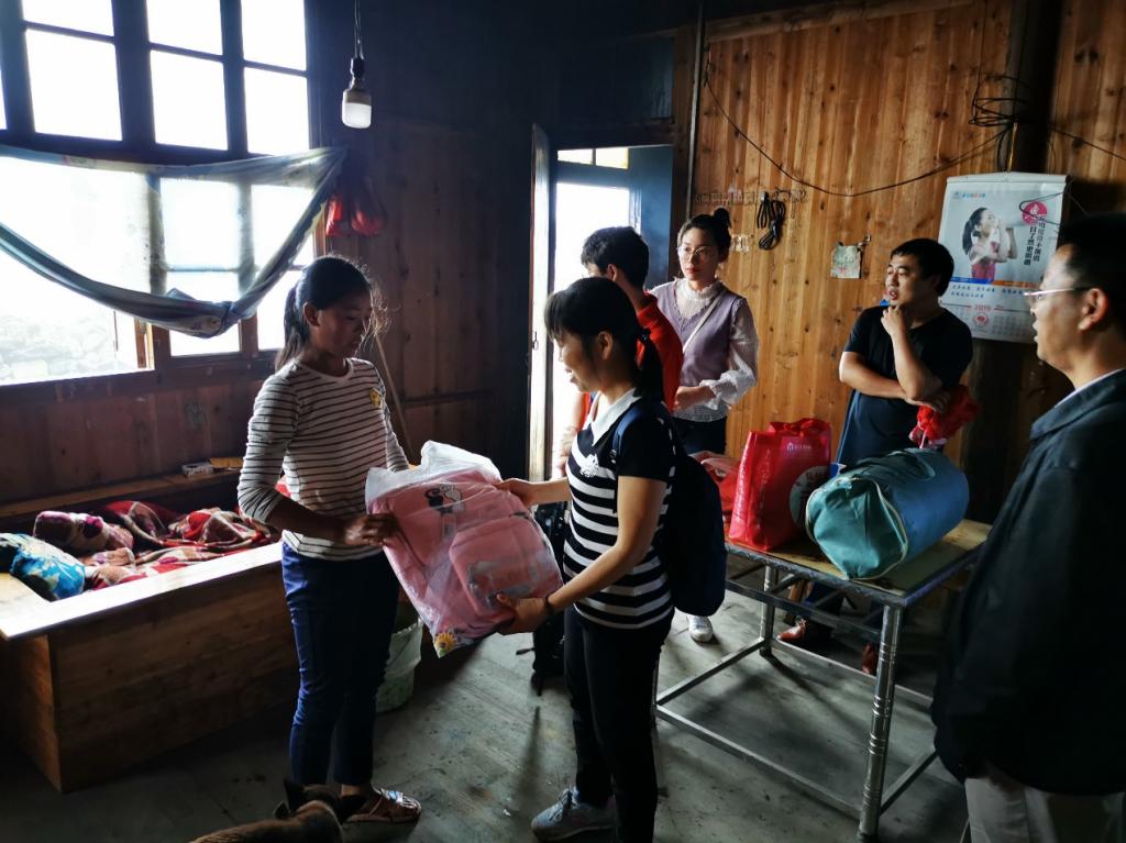 最后一站,是生物技术党支部的对口帮扶对象潘久才家。潘久才也是由于采石场的工作经历导致矽肺病,妻子夏满花患腰椎间盘突出不能从事重劳动,儿子只有初中文化在外务工,女儿尚在念初中。考虑到家庭实际的困难状况,支部成员将晚饭安排在其家中,按照农家乐的伙食费支出,能够给予一定的家庭补贴。虽然家庭情况困难,但是潘久才一家还是充满了对未来生活的期许。家里的小女儿潘燕彬年纪虽小,却很想把书念好,但是由于小学基础较差,升入初中后语文和英语觉得吃力,此次的走访,专门为她带去了大量的书本和课外书籍,支部书记赵小英也不断鼓励她多看书,不要丧失学习的信心。同时联系了公司即将赴白水洞支教的志愿者同学,以便在将来能够在学业上给予更多的关注和帮助。