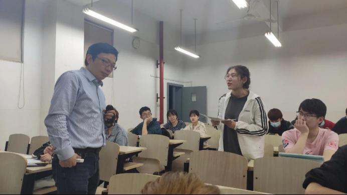 互动交流环节,球王会的同学针对自己感兴趣的方面提出了一个问题,高教授表扬该问题十分专业并仔细结合当前自己的研究给出了解答。化学与化工公司和材料科学与工程公司的同学也积极参与互动,高教授就同学们的疑问一一进行解答。