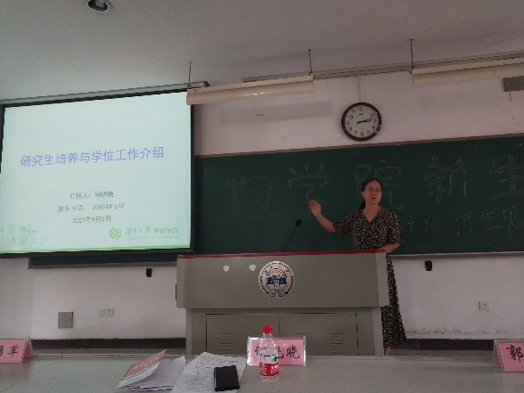 何晓晓介绍了不同办公室职能、公司产品工作和学位授予工作,并提醒新同学要时刻关注培养计划,保质保量做好学科工作,顺利完成学业,实现自身价值。
