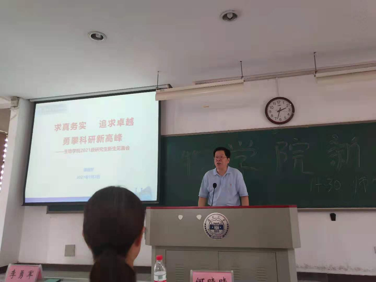 9月3日下午,公司2021级研究生师生见面会于综合楼414召开。出席本次活动有:公司党委书记李勇军、球王会经理谭拥军、副经理何晓晓、副书记陈树芸、创新创业中心主任郭新红、药学系主任徐翔晖、研究生教务秘书彭莉、研究生辅导员刘浩及2021级全体研究生新生。