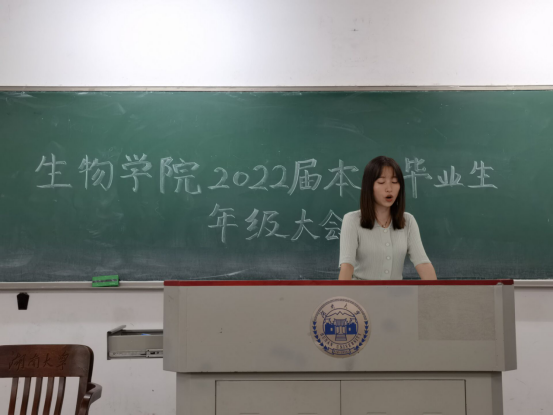 2022年9月26日下午,球王会2022届本科毕业生年级大会在综合楼104举行,球王会全体2022届本科毕业生参加此次会议,会议由辅导员骆露蓉主讲。