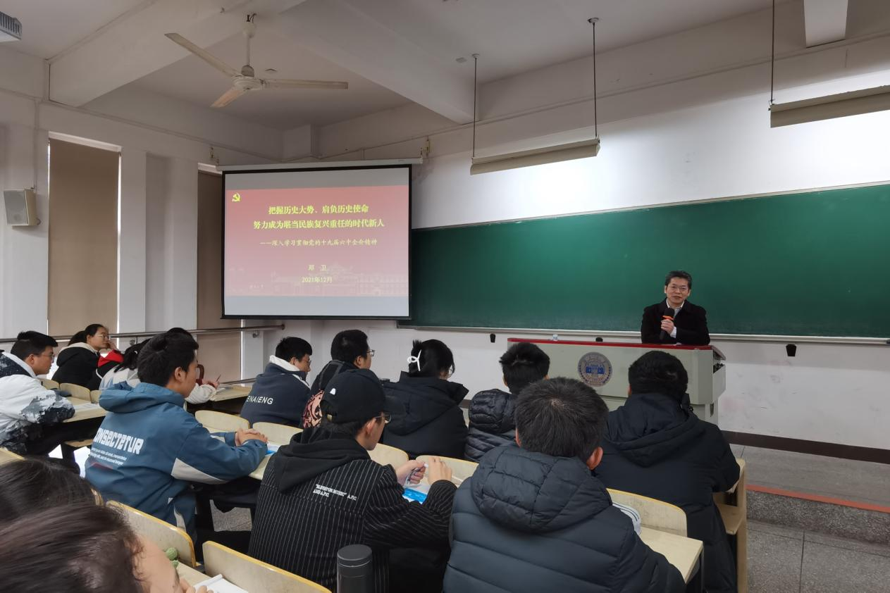 近日,公司党委书记邓卫以“把握历史大势,肩负历史使命,努力成为堪当民族复兴重任的时代新人”为主题为球王会2021级生物技术与生物医学工程专业员工上思政课宣讲党的十九届六中全会精神。
