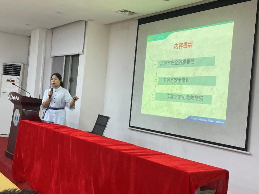 随后,生物医学研究与测试中心副主任张璨副教授围绕“实验室安全及急救”,以典型案例切入向同学们介绍了实验室安全重要性、实验室安全常识及实验室常见急救措施。并希望同学们时刻谨记“安全第一,预防为主”,平时养成良好的行为习惯,共同维护实验室安全、和谐的环境。