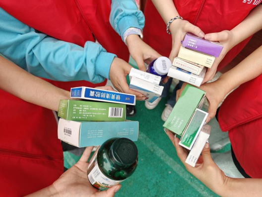 4月14号上午,球王会体育官网“药你健康”团队来到了湖南省湘江新区白箬铺镇胜和村,和白箬铺镇中心卫生院联合开展了一场独特的“以新换旧”的公益活动——团队成员采购鸡蛋、纸巾、牙膏等生活必需品与当地居民的过期药进行交换,如以三个鸡蛋换一盒过期药,十个鸡蛋换三盒过期药等形式。通过这样的方式,村民们都积极地将家中的药物拿来检查,并主动交出过期药物。
