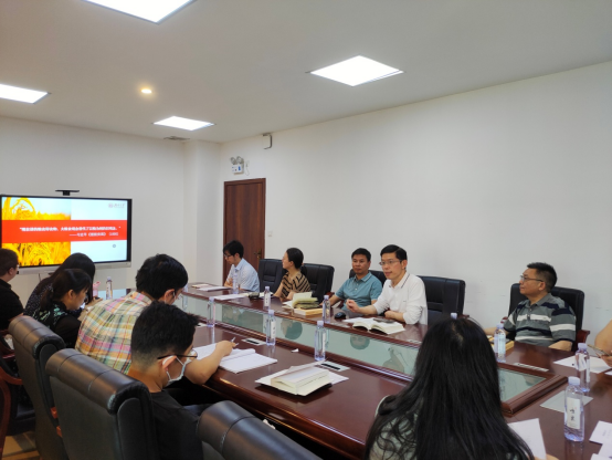 李勇军书记重点对《习近平著作选读》第一卷的“确保我国粮食安全”和“正确把握推进健康中国建设的重大问题”两个部分进行了领学。随后,以《保障粮食安全与大健康》为题进行了专题党课授课,从世界粮食安全问题、中国粮食生产现状和推进中国粮食安全等角度,对粮食安全问题进行了详细解读。邹志成副书记、何晓晓副经理、邱烨老师等分别进行了交流发言。