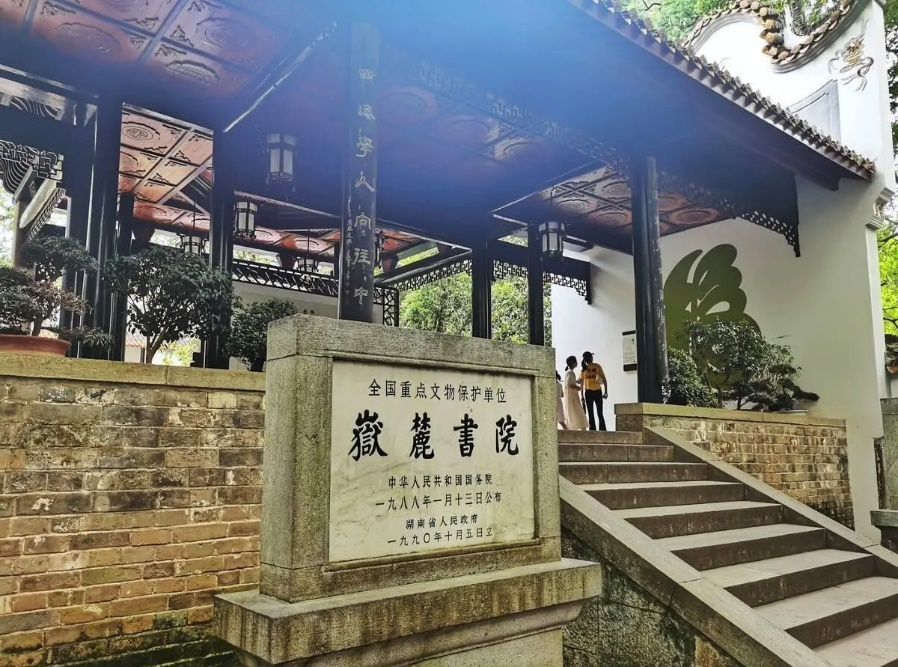 接下来,在学姐的讲解下,同学们沿着中轴线来到岳麓书院的大门。岳麓书院的匾额,大气磅礴,俊朗大气,由宋真宗亲笔题写,寄托着他对这人才辈出的书院的殷勤期盼。其下“惟楚有材,于斯为盛”门联为岳麓书院首任山长及其员工所题。