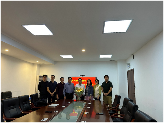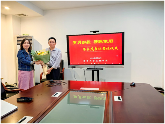 陈艳书记和谭拥军经理分别为汤永茂同志送上鲜花和慰问品并合影留念。亲切的握手、真诚的问候传递着感激之心和祝福之意,大家以热烈的掌声向荣休的汤永茂同志致以最诚挚的敬意和祝福。