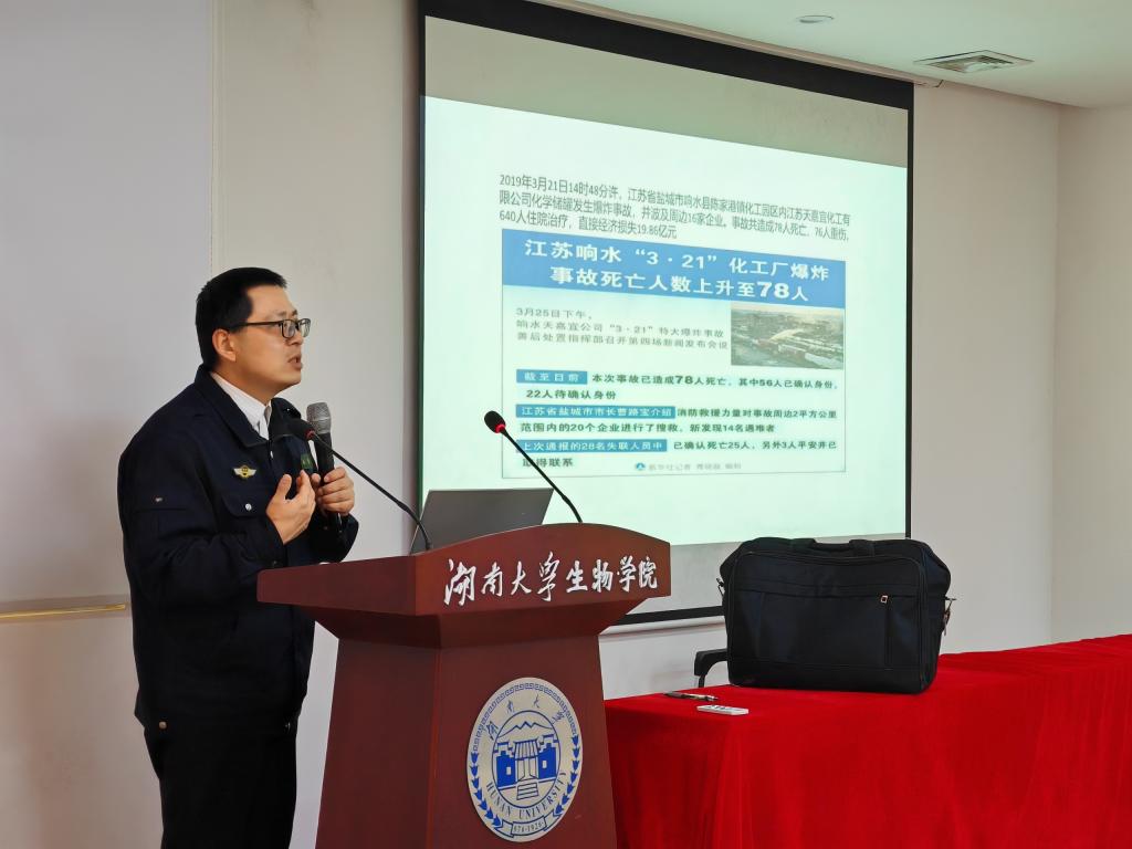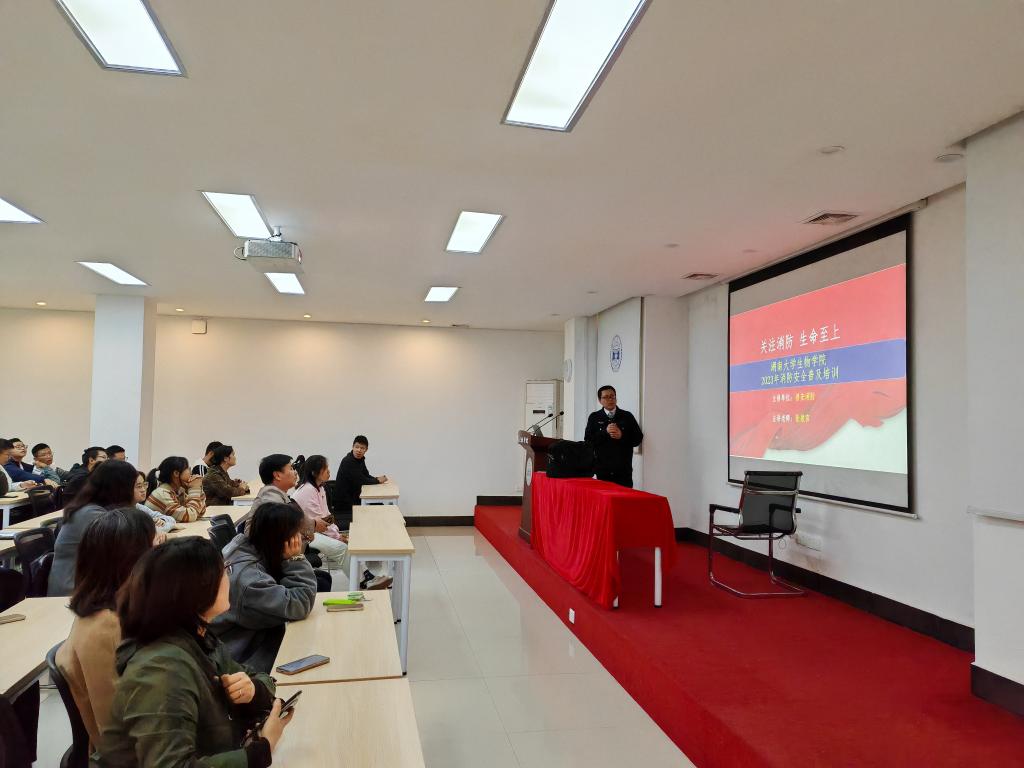 为提升师生消防安全意识,普及消防安全常识,11月14日,球王会开展“关注消防,生命至上”消防安全普及培训活动,湖南省普安消防公司张教官主讲,公司党委书记陈艳、副书记邹志成、实验室教师以及本研员工寝室长参加培训。