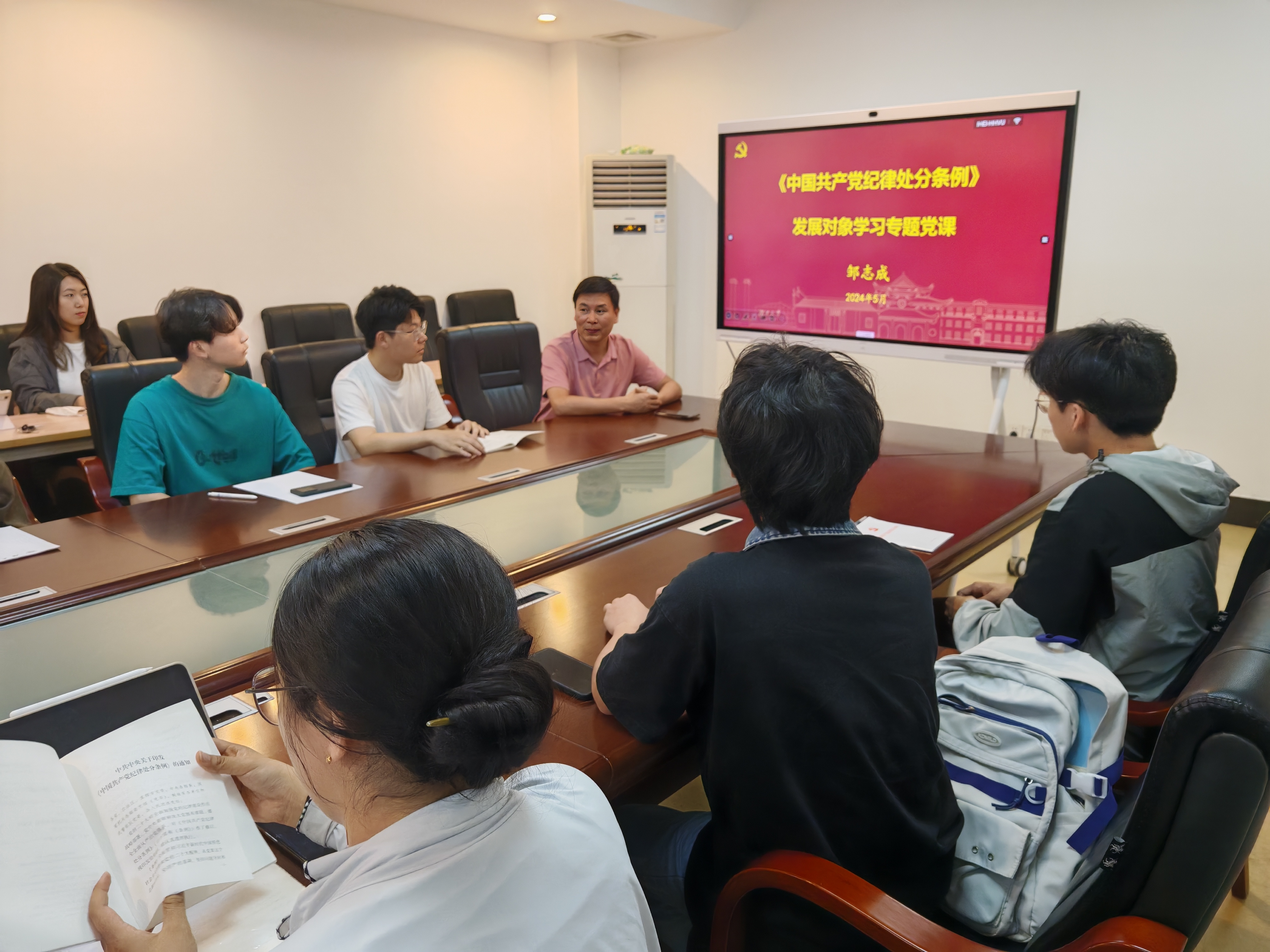 近日,球王会组织本科生、研究生18名入党发展对象开展了党纪学习教育专题党课,邀请公司党委副书记、纪委书记邹志成讲解《中国共产党纪律处分条例》。