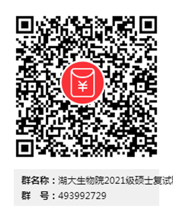 达到复试分数线且有意愿参加公司复试的考生请加入“湖大生物院2021级硕士复试群”(简称“复试QQ群”),群号:493992729,相关通知将在群内发布,请务必加入!不参加本院复试的考生勿扰。