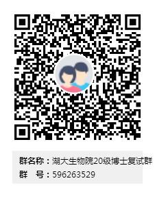 通过公司材料复审合格且有意愿参加本院考核、复试的申请人请加入“湖大生物院20级博士复试”(简称“复试QQ群”),群号:596263529,相关通知将在群内发布,请务必加入!不参加本院复试的考生勿扰。